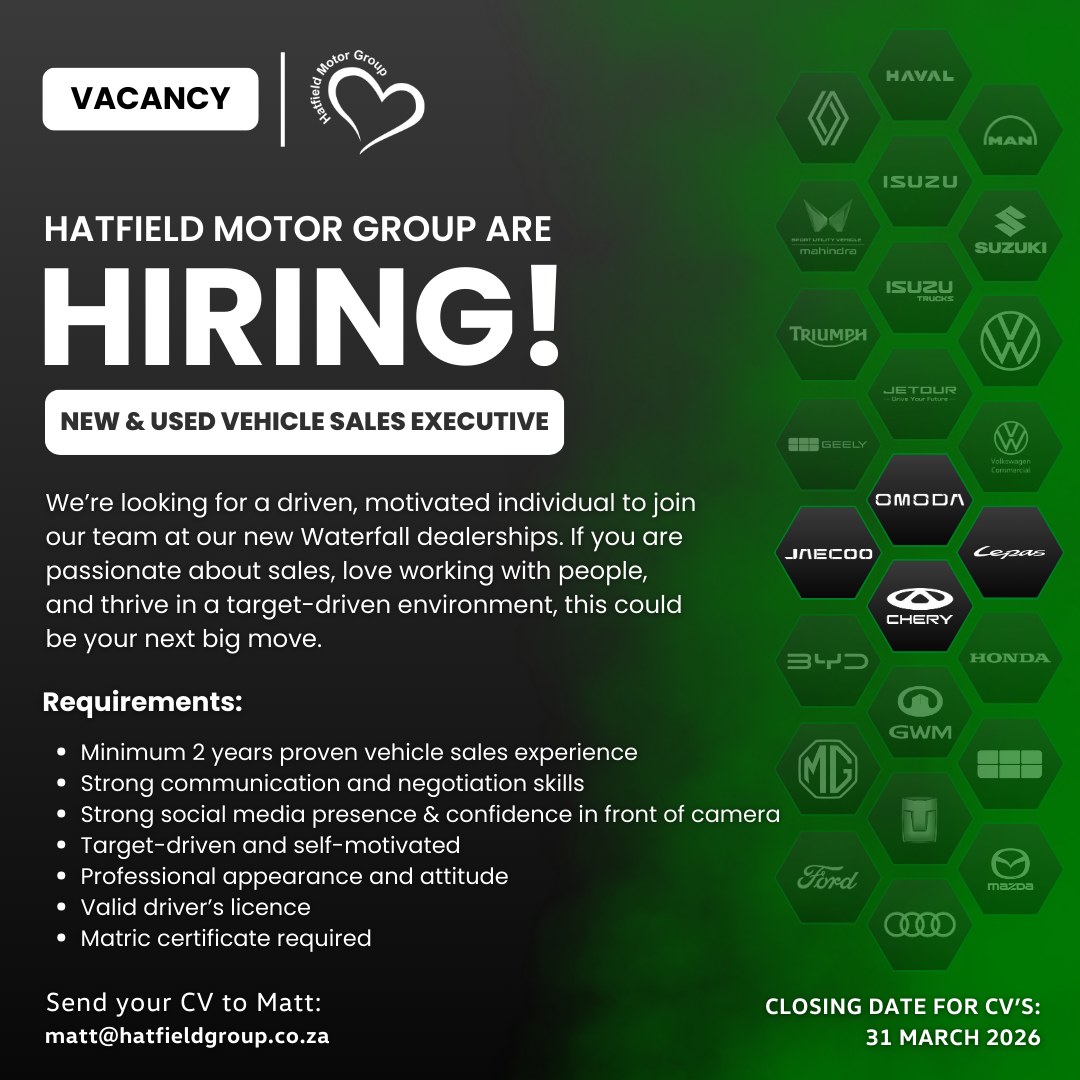Hatfield Motor Group is looking for a high-performing New and Used Vehicle Sales Executive to join our Waterfall dealerships.